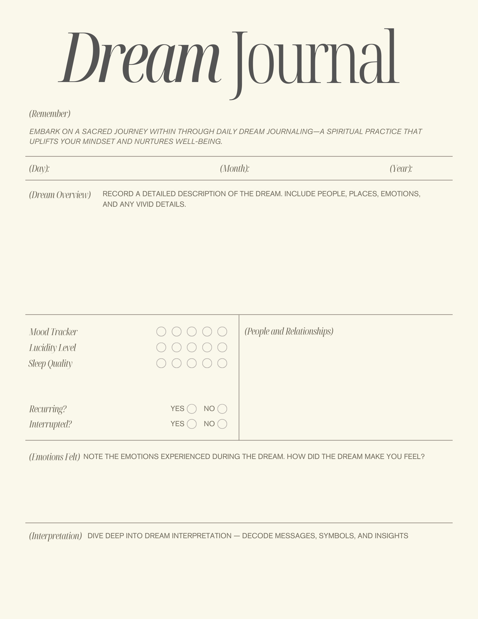 Enough space for recording detailed descriptions of dreams. This includes noting people, places, emotions, and vivid details experienced during the dream.